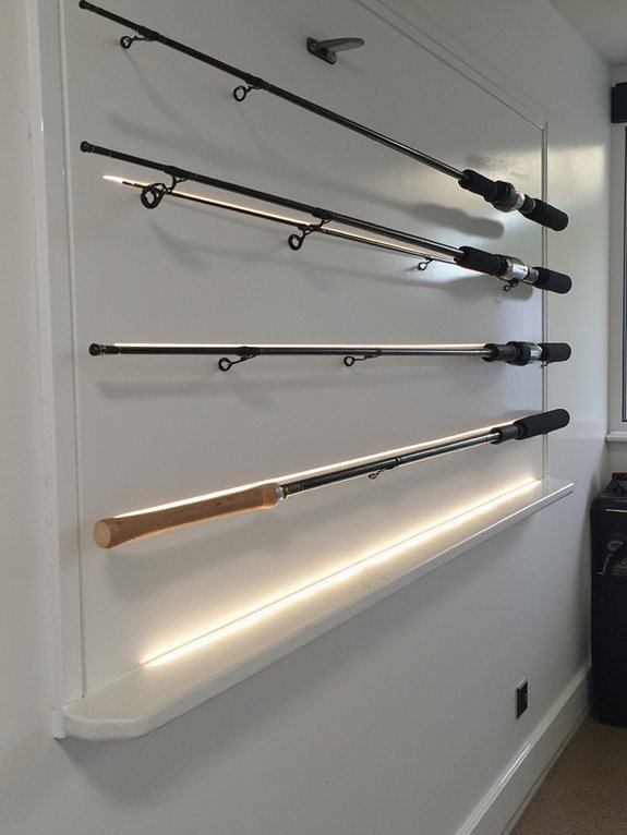 The cabinet’s design incorporates essential elements like built-in LED lighting for visibility and ventilation holes to prevent moisture accumulation. When installed properly with accurate measurements and secure mounting, these cabinets maximize vertical storage space while keeping valuable fishing gear protected from dust and potential damage.