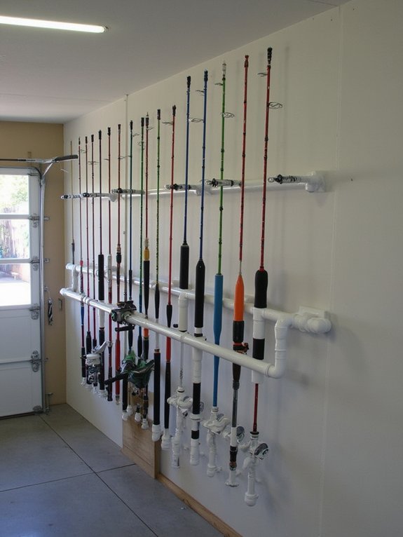PVC pipe rod racks offer an affordable DIY storage solution for fishing gear. Using basic materials from a hardware store, these racks can be customized to fit any space while providing durable, weather-resistant organization for rods.