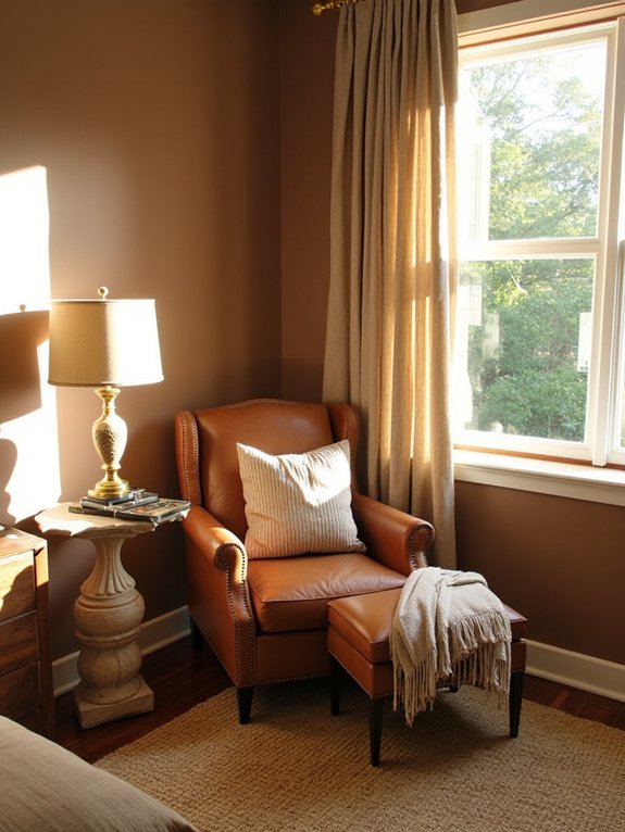 2. Brown Leather Reading Nook