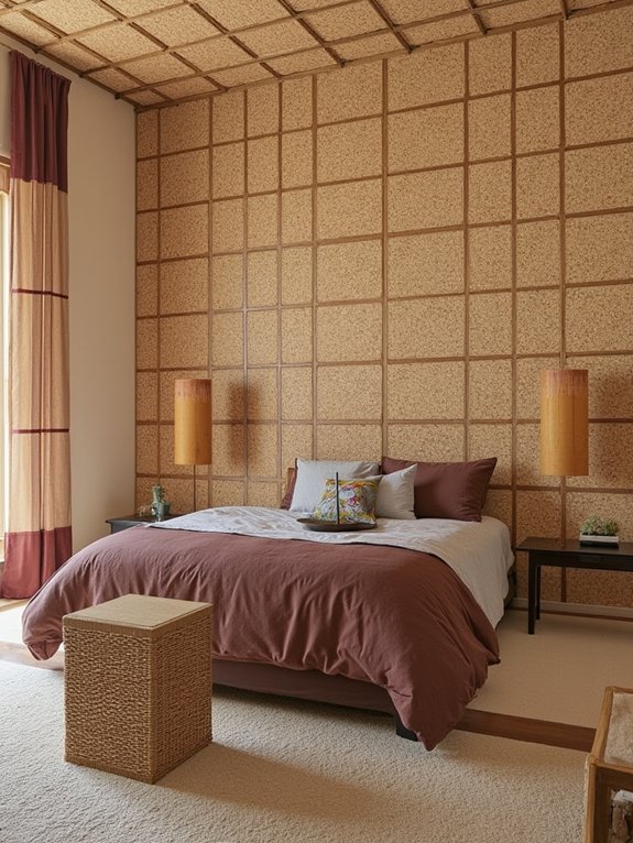 Natural cork panels provide an environmentally conscious option for bedroom wall coverings, combining the warmth of natural wood with unique textural elements. These panels enhance room aesthetics while offering practical benefits like sound absorption and temperature regulation.