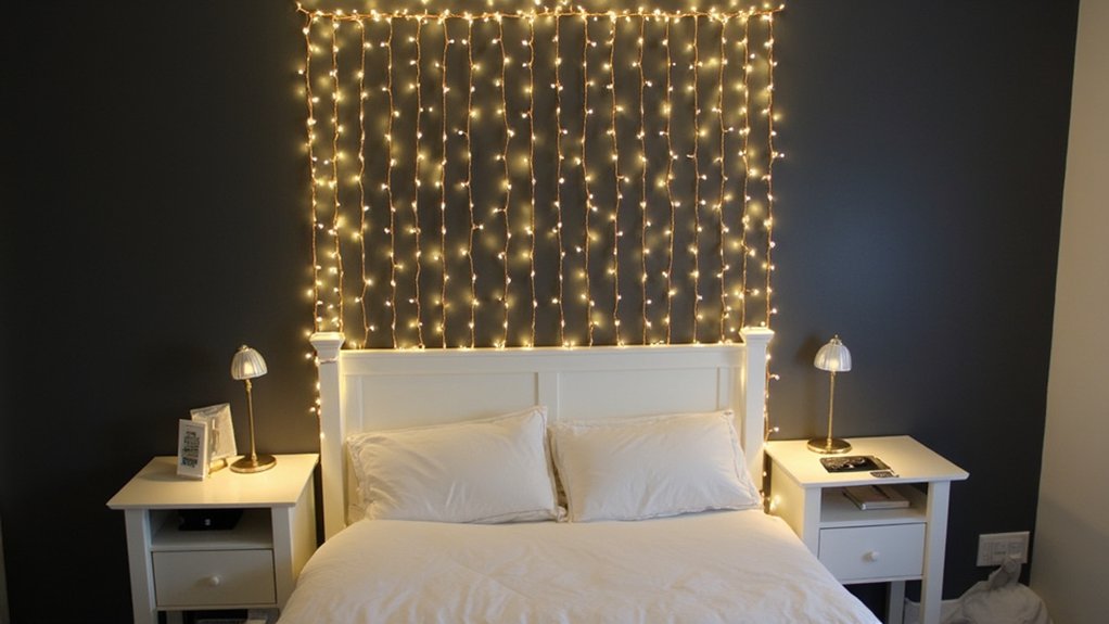 - Drape over headboard – Secure a 16-foot strand with small clips.