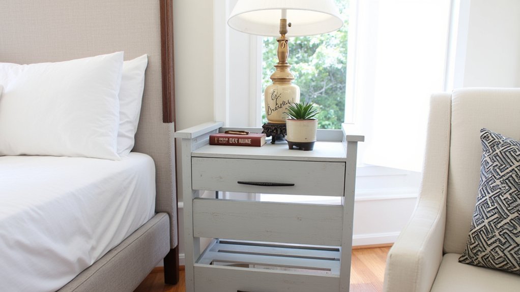 Let’s shift gears from crafting wall art to building a practical piece for your guest bedroom with a repurposed crate nightstand. You can transform an old wooden crate into a functional bedside table in just two hours.