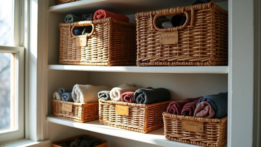 To maximize their utility, assign specific categories to each basket and label them for quick identification. Place the baskets on shelves, inside closets, or even under hanging clothes to optimize space and maintain a tidy look. With a little creativity, thrifted baskets can transform chaotic wardrobe areas into organized, visually appealing storage solutions.