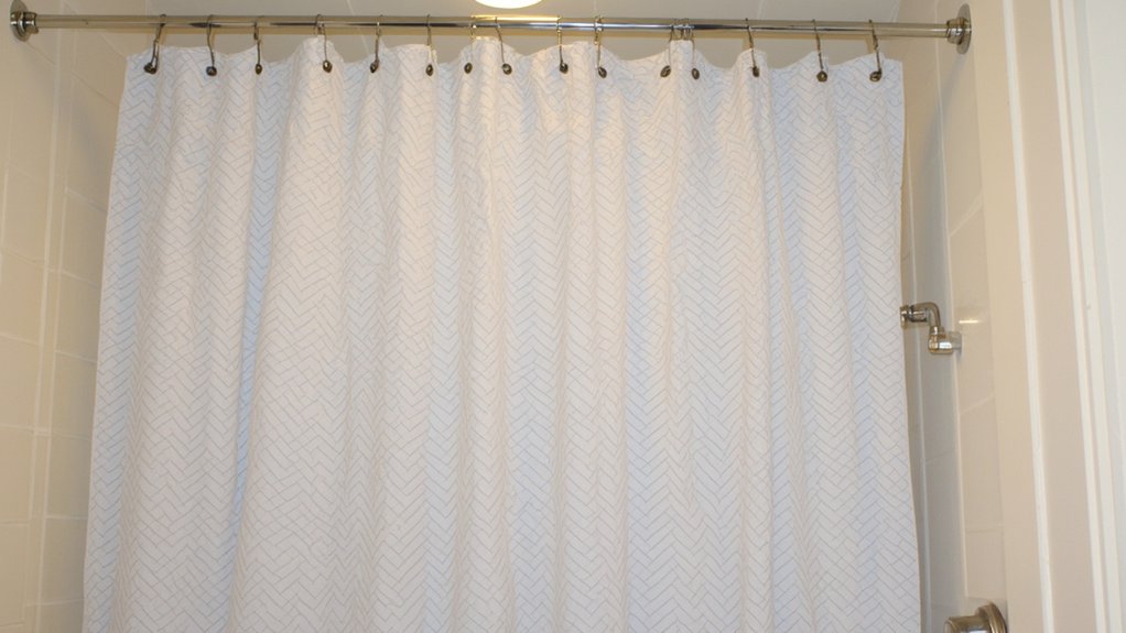 Another smart upgrade for your guest bathroom is swapping out an old shower curtain for a chic, fresh design. You’ll instantly transform the space with minimal effort—think bold patterns or calming neutrals. Pick a standard size (72×72 inches) to fit most tubs, and install it in just 5 minutes.