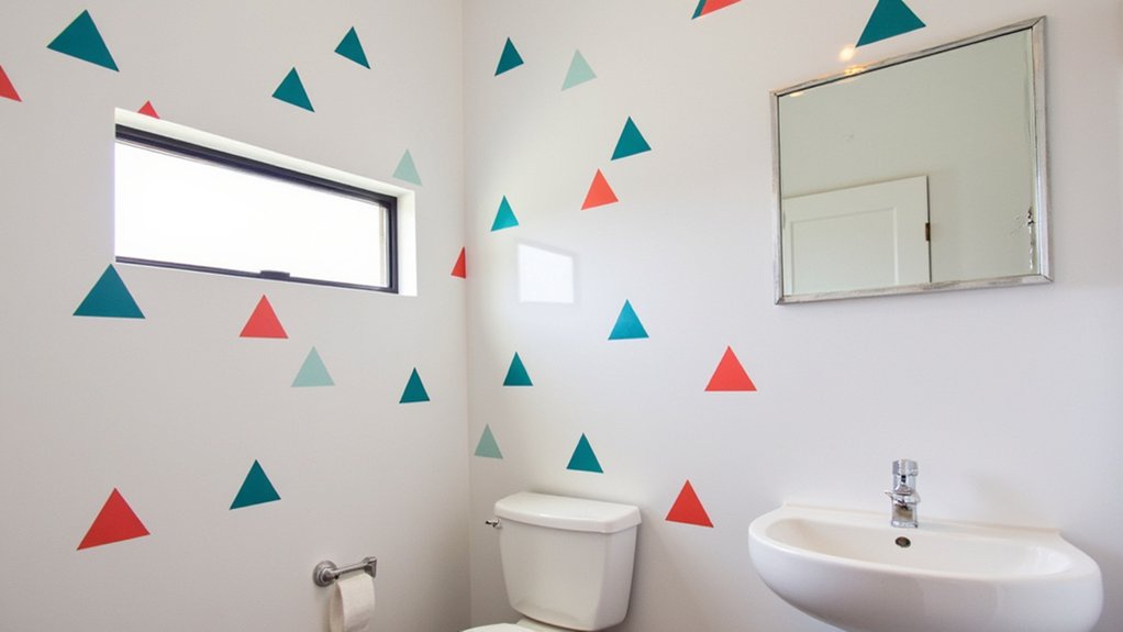 Let’s plunge into a fun way to brighten up your guest bathroom with colorful wall decals. These affordable stickers can transform dull walls in under an hour. Pick designs like tropical leaves or geometric shapes, sized around 12×12 inches, to fit small spaces.