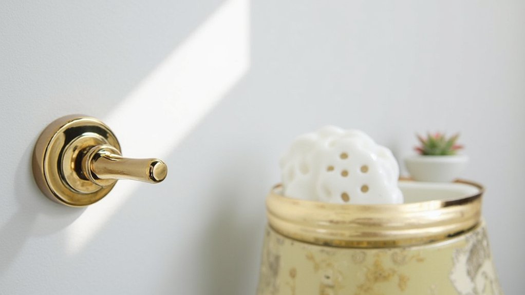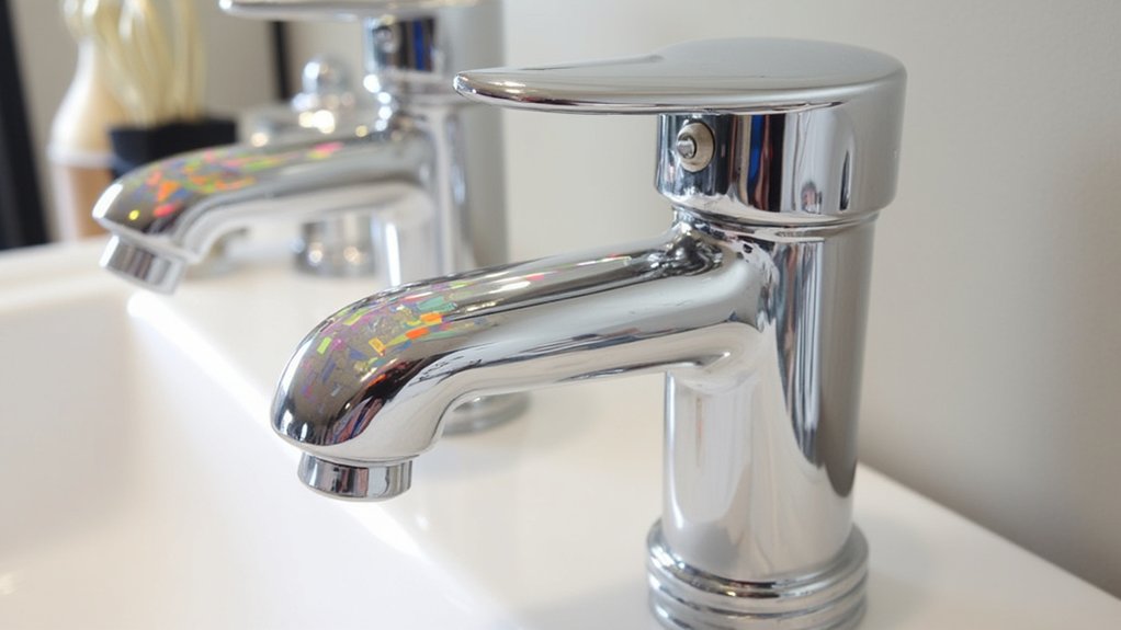 While updating your guest bathroom, don’t overlook the power of faucet decals for a quick, chic fix. These affordable stickers can transform boring faucets into eye-catching accents in under 10 minutes. Grab decals sized for standard faucets, about 2-3 inches wide, and follow these steps.