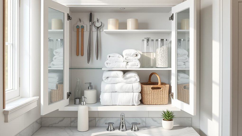 You’re about to discover how to transform your chaotic bathroom cabinets into organized spaces that’ll make your morning routine a breeze! I’ve tested countless storage solutions over the years, and these eight game-changing ideas will help you maximize every inch of space – whether you’re dealing with a tiny apartment bathroom or a spacious master suite. Let’s explore how you can finally say goodbye to that jumbled mess of toiletries and hello to a perfectly organized oasis.