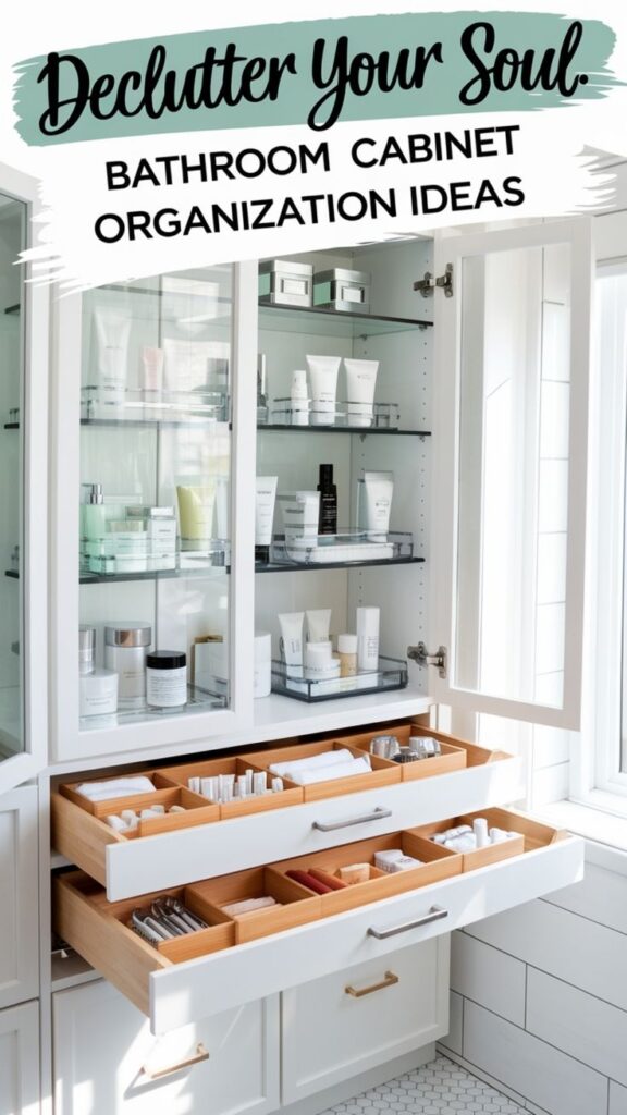 Empty your cabinet completely and measure the available space. Sort items into categories such as first aid, dental care, hair products, and skincare. Select appropriately sized clear containers that maximize vertical space while fitting comfortably within your cabinet dimensions.