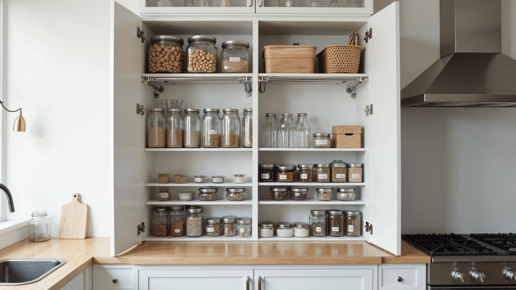 Did you know that most kitchen pantries waste up to 30% of their usable space due to poor organization? Hey, I’ve been there, scrambling to find that can of soup buried behind expired snacks—ugh, what a mess! Let’s fix that together. Start by clearing out your cabinet and measuring the depth, say 12 inches, for custom shelving. Trust me, there’s more to uncover for a clutter-free kitchen!