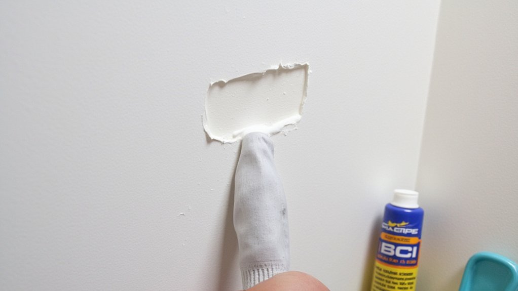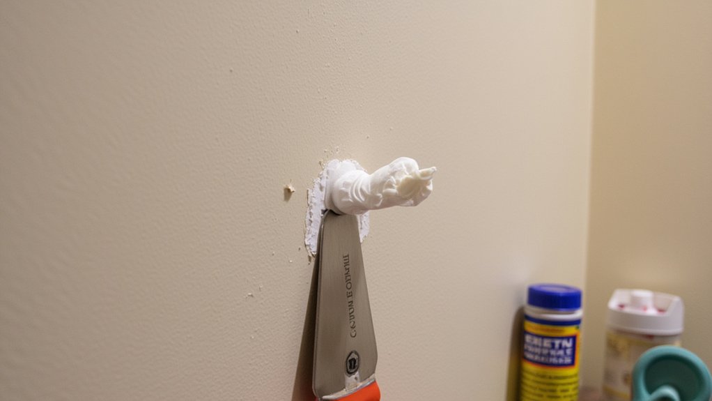 “Professional-grade spackling compounds offer superior adhesion and minimal shrinkage compared to makeshift solutions,” notes contractor Mike Reynolds. Apply your chosen filler with a putty knife, let it dry completely (usually 2-4 hours), and sand smooth with 220-grit sandpaper. For the best results, prime the patched area before painting to guarantee an even finish.