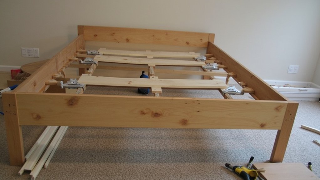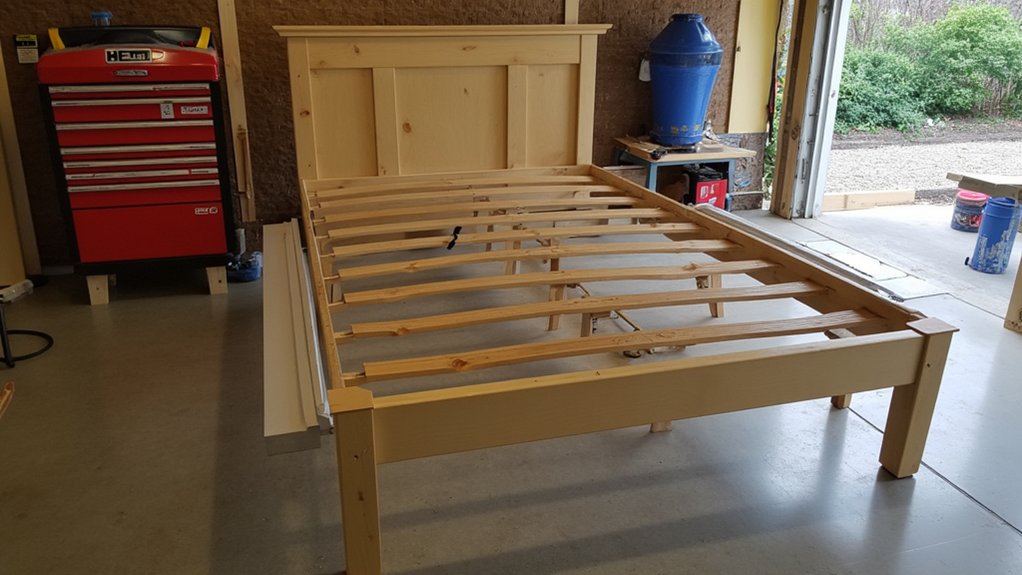 For queen or king sizes, add a third support beam to prevent sagging. Double-check that all slats are level and firmly attached before placing your mattress.