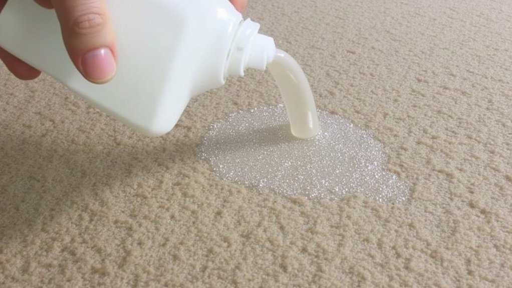 When you’re dealing with carpet stains, hydrogen peroxide works as a powerful oxidizing agent that breaks down stain molecules through a chemical reaction. The hydrogen properties allow it to penetrate deep into carpet fibers, effectively lifting both organic and inorganic stains.