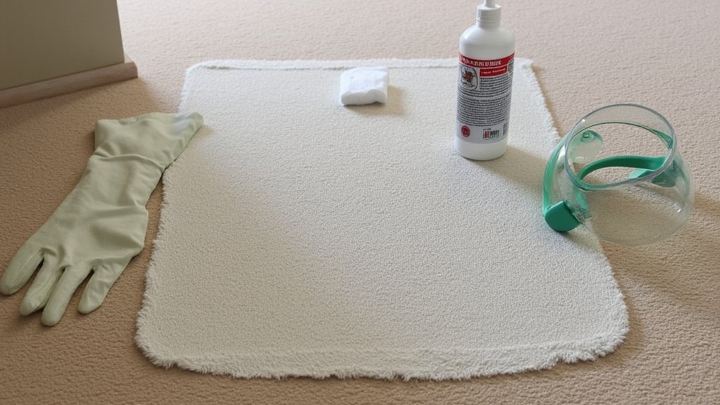 Before using hydrogen peroxide on your carpet, you’ll need to take proper safety measures and conduct a spot test. “I always remind my clients that hydrogen peroxide, while effective, requires careful handling to prevent damage,” notes Jennifer Morris, professional carpet cleaner with 15 years of experience.