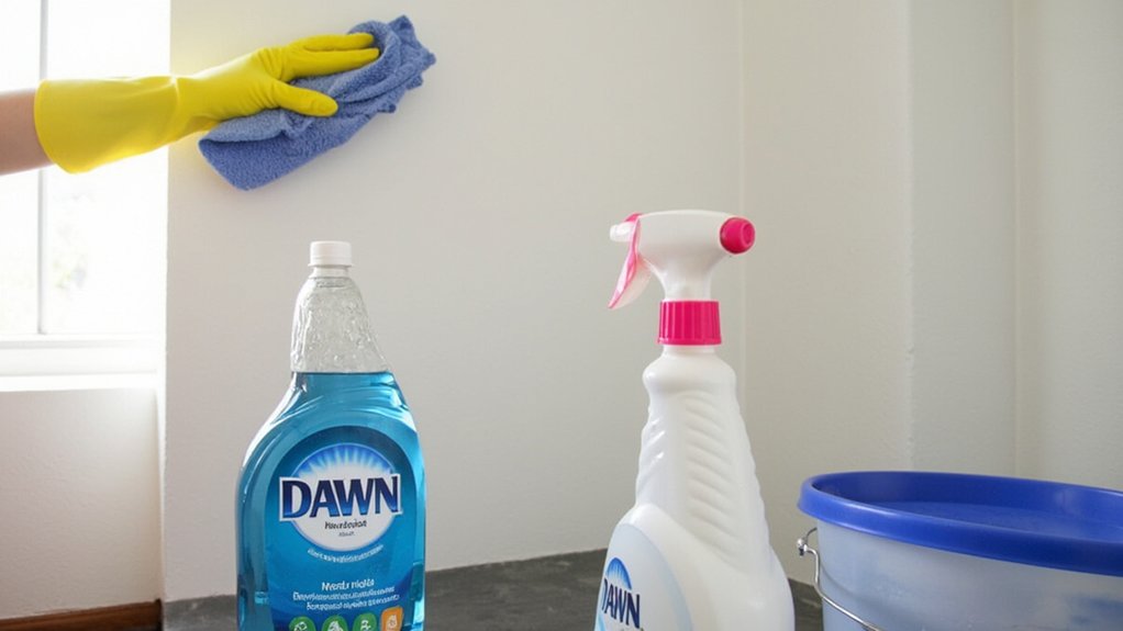 When stubborn wall stains mock your cleaning efforts, Dawn dish soap might be your secret weapon. You’ve probably used this blue miracle worker on dishes, but its grease-fighting power extends far beyond your kitchen sink. Professional house cleaner Maria Rodriguez notes, “Dawn’s gentle yet effective formula breaks down oils without damaging paint.” Before you grab that sponge, though, you’ll need to know the proper dilution ratios and techniques to avoid common wall-cleaning pitfalls.