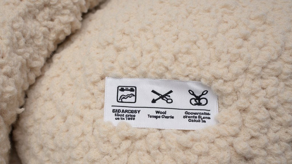Before washing your wool blanket, you’ll need to carefully check the care label for specific cleaning instructions and restrictions. The label contains essential information about water temperature, spin cycle settings, and whether machine washing is safe for your wool fiber.