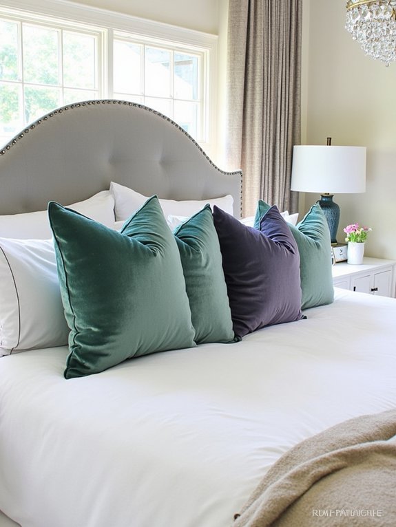 Velvet throw pillows add luxury and sophistication to bedroom decor through their plush texture and elegant sheen. When layered strategically with complementary fabrics and colors, these pillows create an inviting focal point that elevates the entire room’s aesthetic.