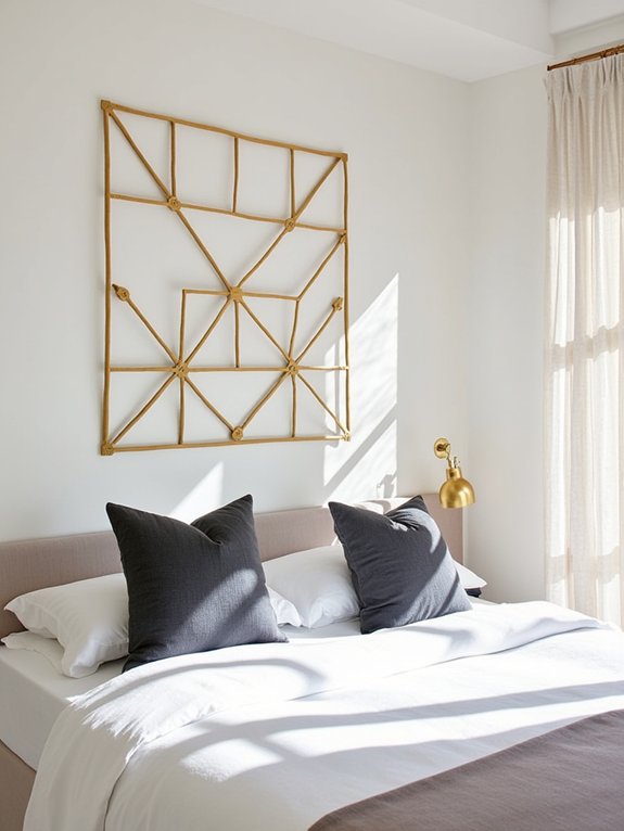 Geometric metal wall art combines architectural appeal with modern aesthetics through clean lines and striking patterns. These versatile pieces serve as sophisticated focal points in bedroom spaces, working equally well with minimalist or elaborate design schemes.