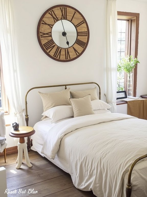 For optimal impact, choose a clock 24-30 inches in diameter with authentic copper patina, classic numbering, and antique-style hands. Mount it at eye level above furniture pieces like beds or dressers, where it can anchor the room’s design while maintaining easy visibility. This style particularly enhances industrial loft, Mediterranean, and farmhouse bedroom décor schemes.