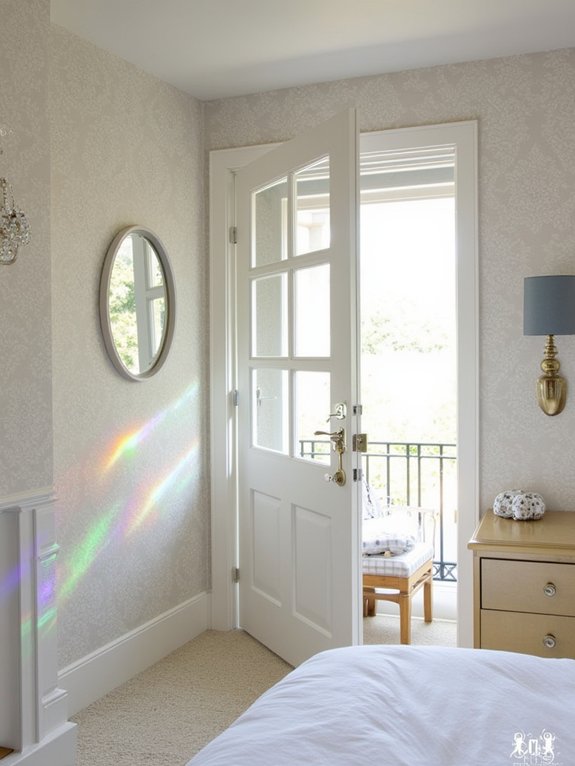 Vintage crystal door handles elevate standard bedroom entrances with their timeless elegance and sparkling presence. These decorative hardware pieces feature various styles, from clear knobs with brass backplates to faceted handles with chrome bases, offering both function and aesthetic appeal.
