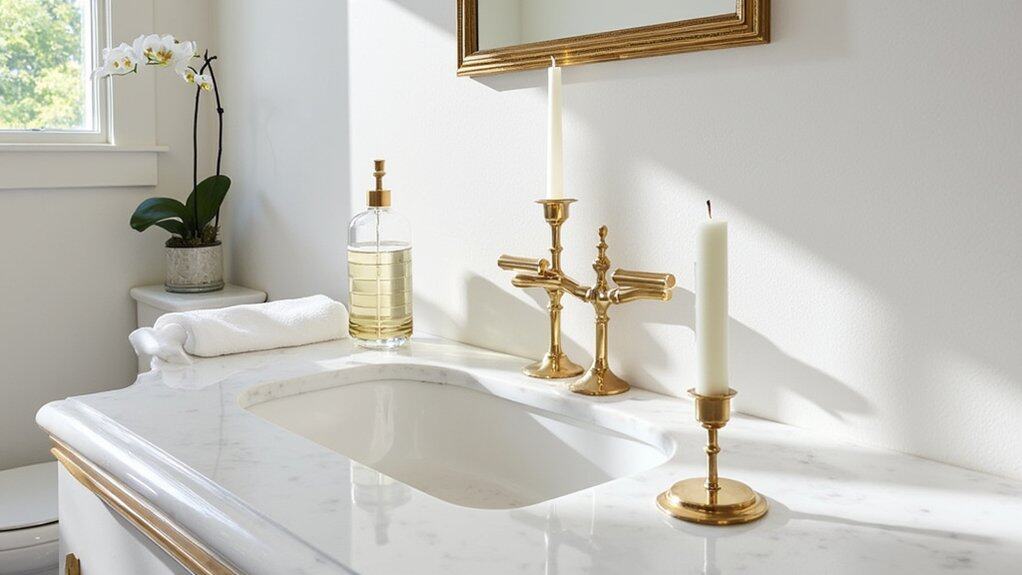 Let’s transform your powder room into a stylish haven with chic accessories. Start with an elegant mirror, ideally 24×36 inches, to create depth. Hang it within a day for instant impact. As designer Jane Smith says, “A well-placed mirror, mounted at eye level, can redefine a small space.” Curious about the next nine must-haves to elevate your room? Stick around for practical tips to complete the look.