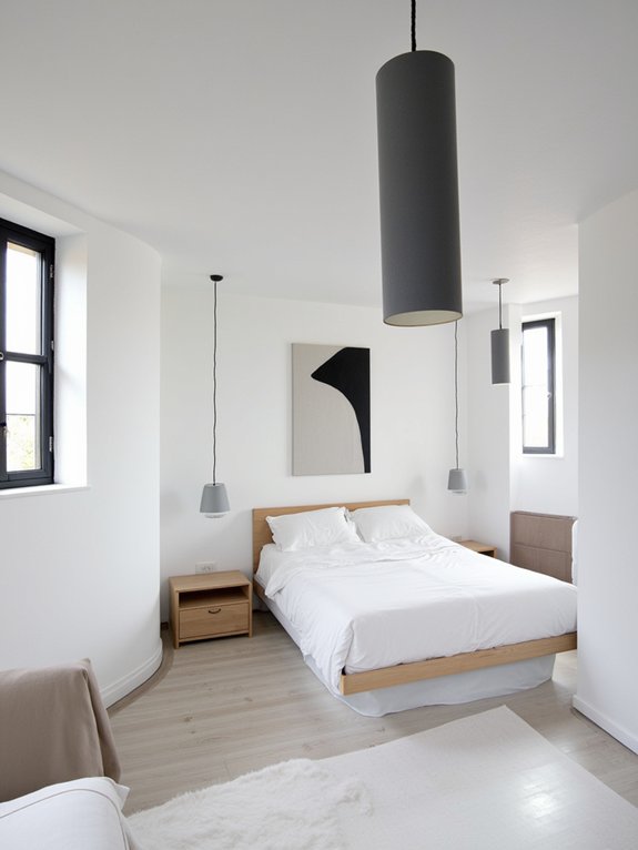 Pendant lights offer an elegant lighting solution for bedrooms, creating visual interest while maintaining a serene atmosphere. Unlike bulky ceiling fixtures, these hanging lights can be strategically positioned to enhance both form and function, especially when installed above bedside tables.