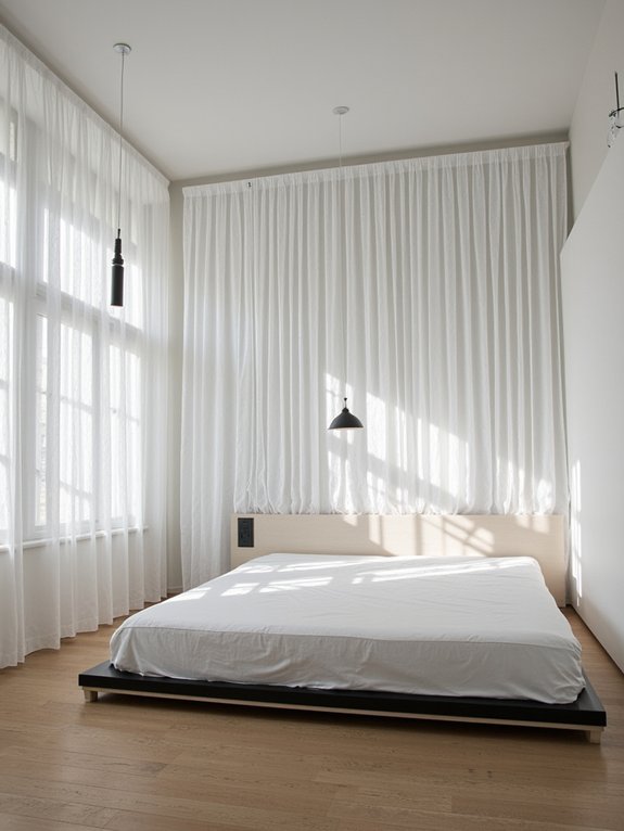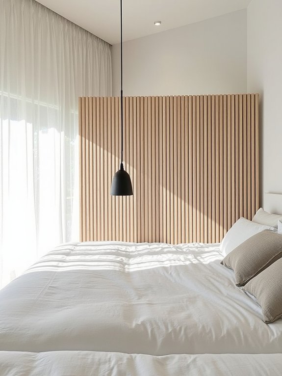 Linen privacy screens offer a minimalist alternative to traditional curtains, providing filtered natural light while maintaining clean room aesthetics. The natural texture of linen creates soft, diffused illumination and ensures privacy without visual clutter.