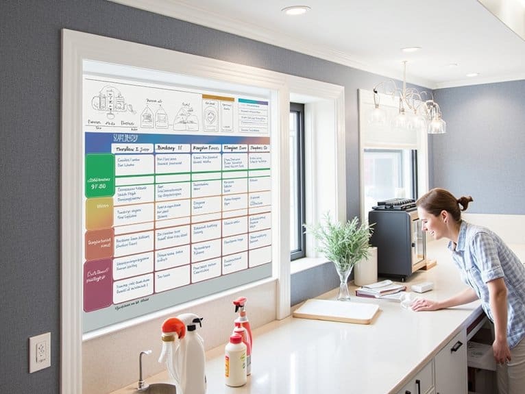 How can households guarantee cleaning responsibilities are distributed fairly among family members? Creating a balanced chore distribution starts with implementing a structured chore rotation system that guarantees an equitable workload for everyone.