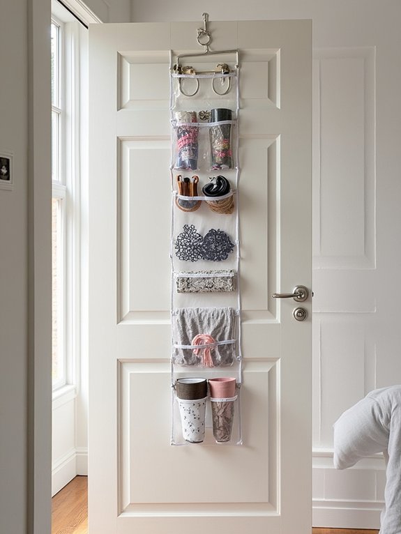 Over-door hanging organizers convert empty door space into efficient storage areas. These practical accessories mount easily over any standard door, providing additional storage without requiring permanent installation or taking up floor space.