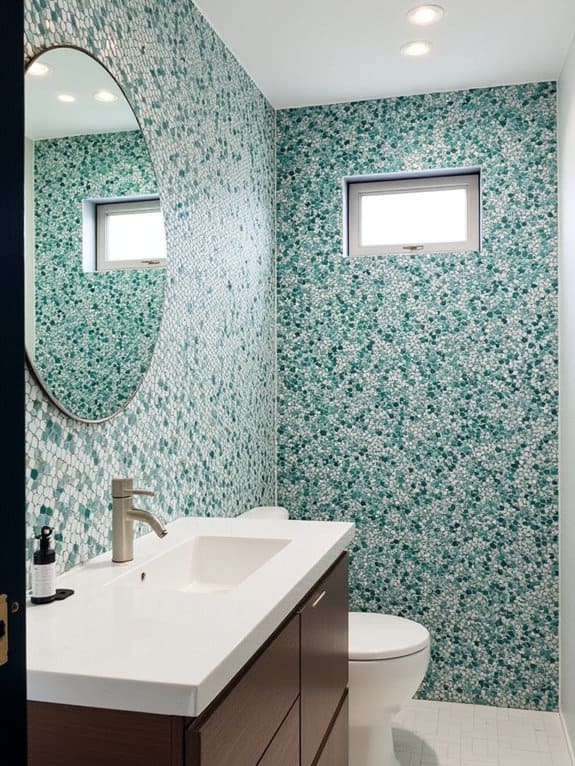 A patterned mosaic backsplash can transform a half bathroom from basic to extraordinary by serving as an eye-catching focal point. The strategic combination of tiles in varying sizes, shapes, and colors creates visual depth while harmonizing with existing design elements.