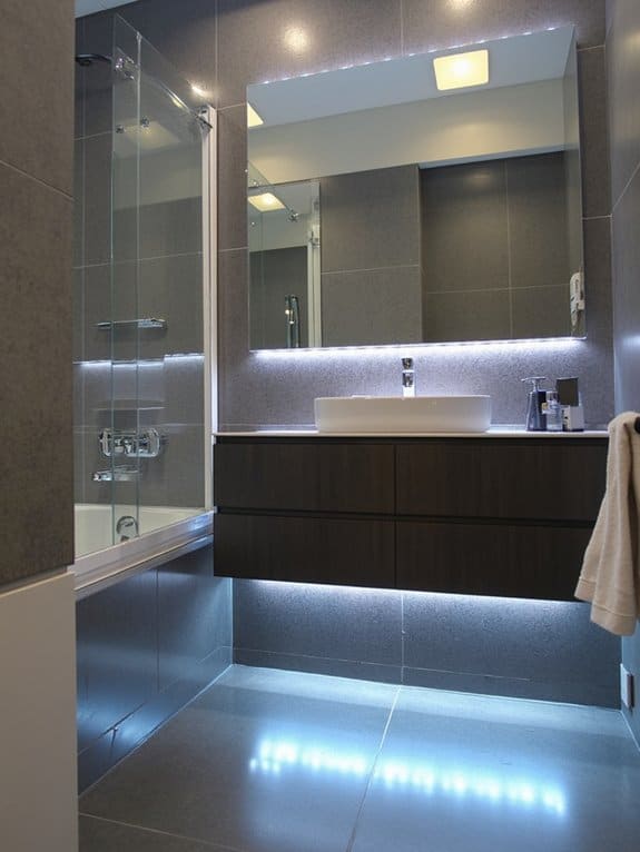The strategic placement of waterproof LED strips transforms ordinary bathroom features into striking design elements, providing both ambient and task lighting. This lighting solution offers gentle nighttime illumination, eliminates harsh shadows, and highlights decorative features while improving safety and functionality in the space.