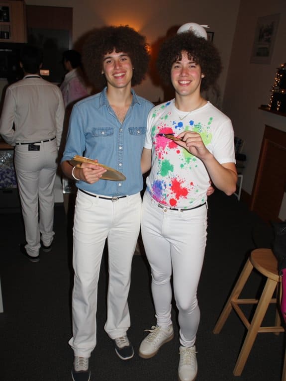 A Bob Ross paint palette serves as an essential prop for portraying the iconic artist, capturing his memorable PBS persona. The palette can be crafted from cardboard or foam board in a large oval shape, painted brown to resemble a traditional artist’s palette, and adorned with raised circles of vibrant paint colors.