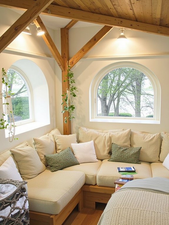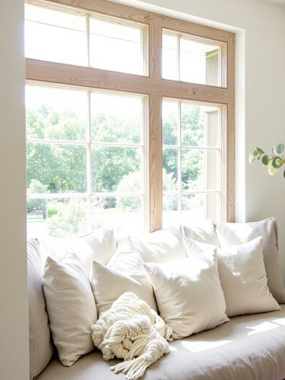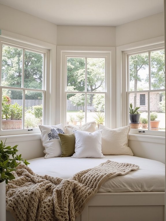 The space can be customized with layered textures in coordinating colors, battery-operated scented candles, and adjustable curtains for privacy control. With an ideal depth of 24 inches, this architectural feature provides comfortable seating while maximizing the natural connection to the outdoors.