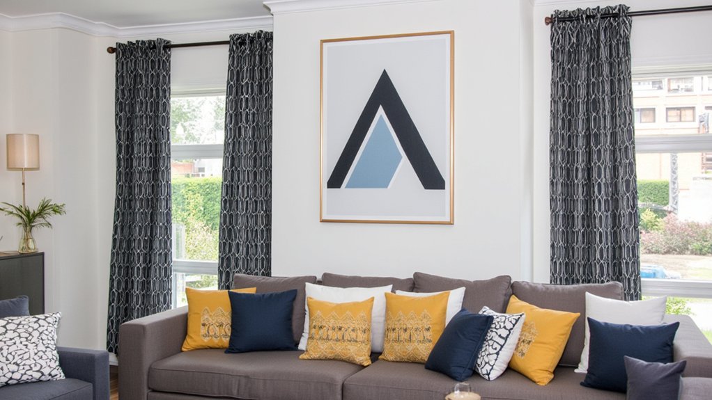 - Throw Pillows: Add 18×18-inch cushions with bold triangles or hexagons on your sofa.