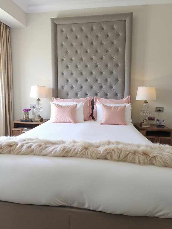Coordinated nightstands on both sides of the bed establish symmetry while offering dedicated storage for each partner. These matching pieces serve as personal spaces where individuals can keep their essential items within easy reach while maintaining the room’s visual balance.