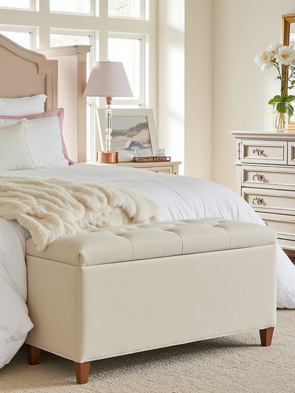 The ottomans can be strategically placed at the foot of the bed or near seating areas, creating a cohesive look while maximizing storage space. With upholstery options that complement existing decor, these practical furniture pieces maintain a clean, organized appearance while keeping personal items discreetly tucked away.