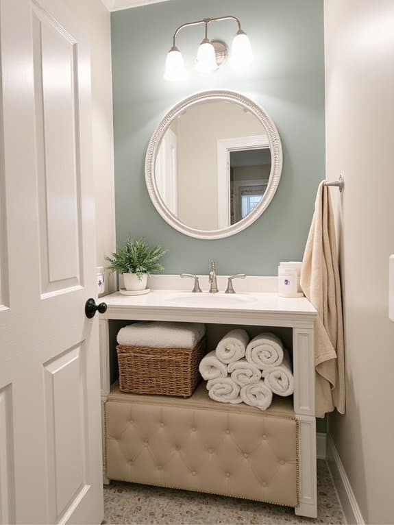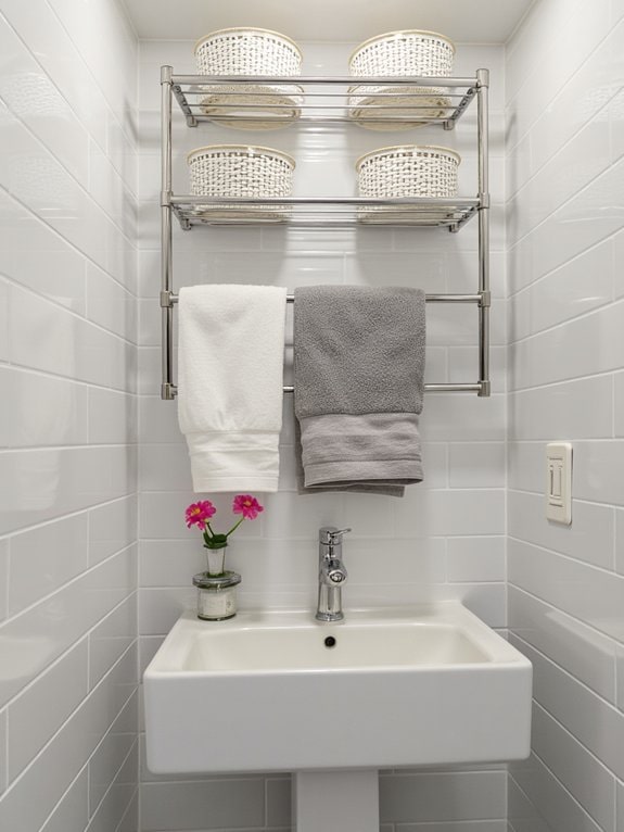 Get ready to discover space-saving tricks that blend functionality with style, making your compact bathroom feel twice as spacious and infinitely more efficient.
