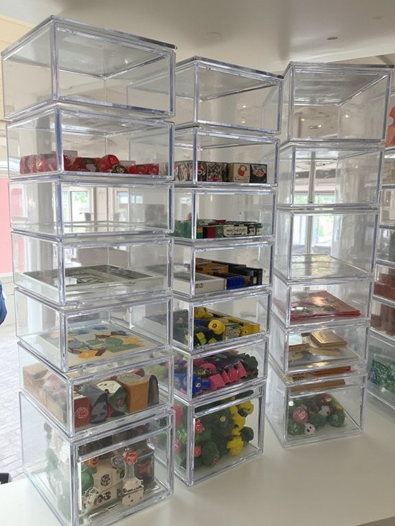 Clear plastic storage containers provide a practical solution for organizing board games while maintaining visibility and accessibility. The transparent design allows you to quickly locate games, while stackable features maximize space usage.