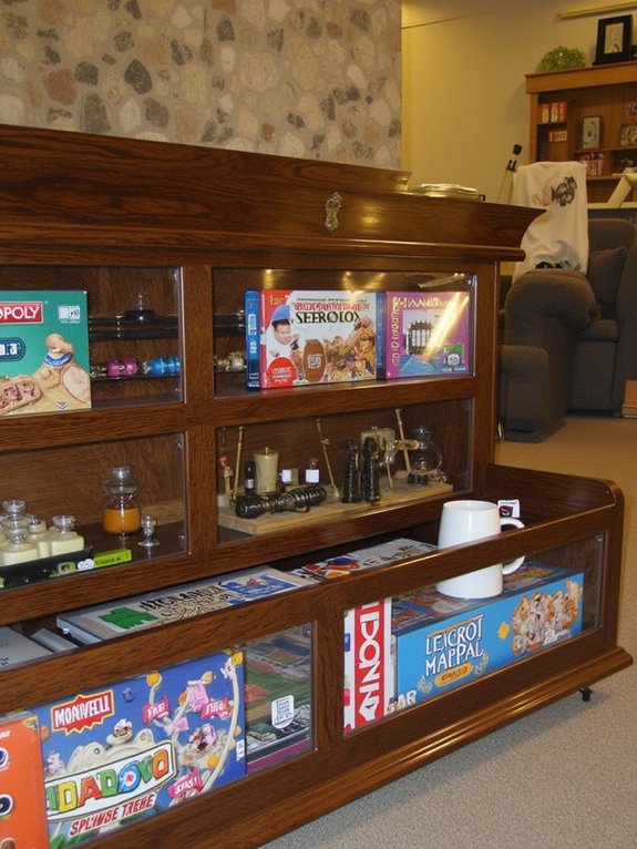 Magnetic cabinet display storage offers a modern alternative to traditional storage methods by utilizing the interior space of cabinet doors. By installing magnetic boards or strips inside cabinets, you can create an organized display system that keeps game pieces secure and visible while maximizing available space.