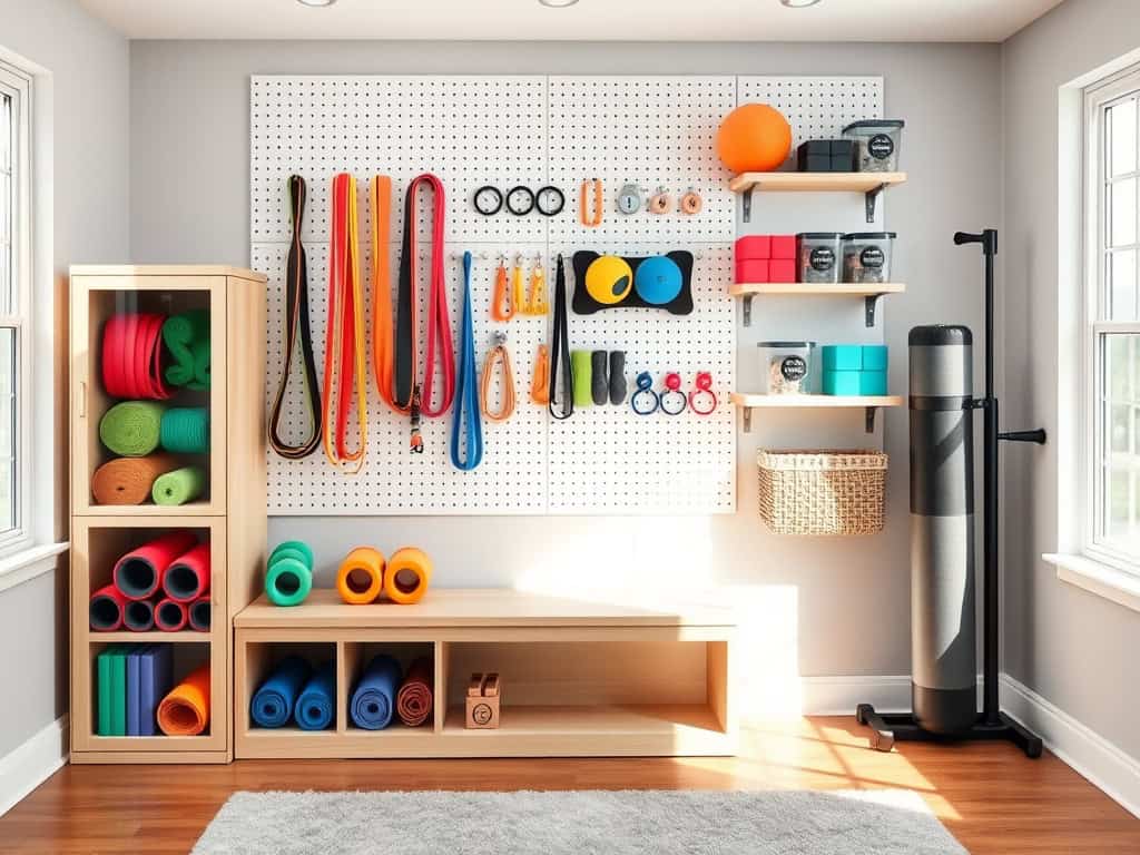 Pegboard systems are highly customizable and can accommodate various types of exercise equipment, from resistance bands to jump ropes. This versatile storage solution not only creates an organized environment but also protects your investment in fitness equipment by keeping items off the floor and properly stored.