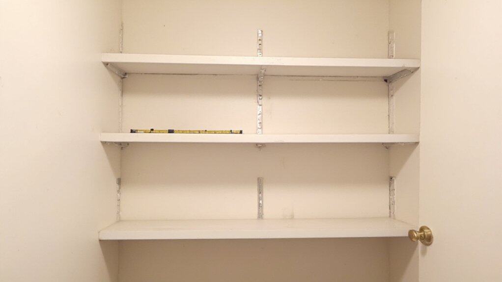 Once the brackets are marked, drill holes and secure them with appropriate anchors and screws to support the weight of your items. Place the adjustable shelves onto the brackets, testing their sturdiness before loading them with belongings. This setup allows you to reconfigure the shelf heights as your storage needs change over time, keeping your bathroom closet organized and accessible.