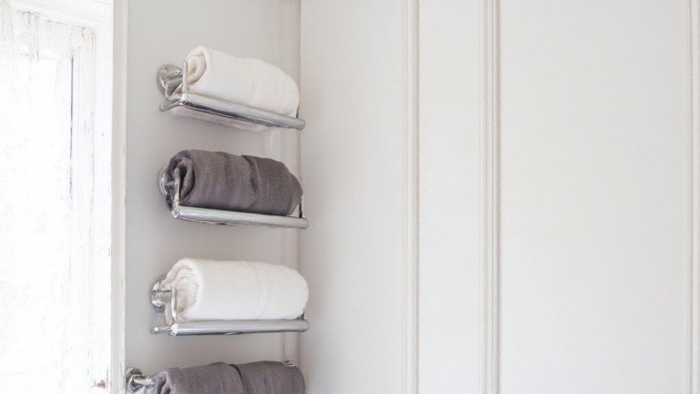 Hanging towel bars in a bathroom closet is a practical way to maximize storage space and keep towels easily accessible. Start by selecting sturdy towel bars that can support the weight of wet towels and fit the dimensions of your closet. Install them at a convenient height on the inside of the closet door or on a side wall, making certain they are securely mounted with appropriate hardware like screws or anchors.