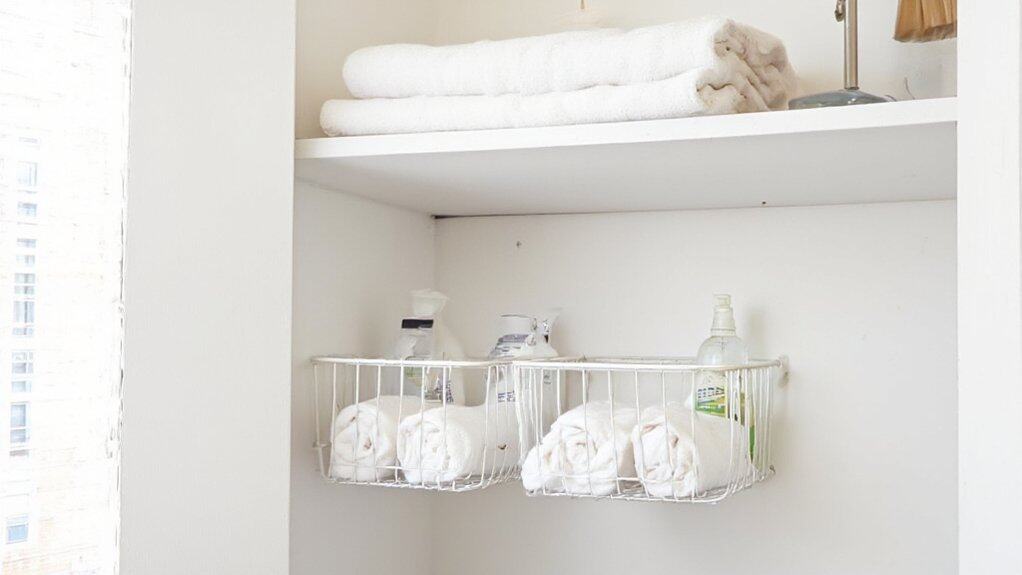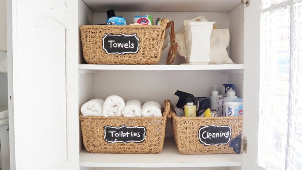 Hey, let’s chat about sprucing up your bathroom closet for better access! I’ve got some killer ideas to share, trust me—I turned my tiny 3-by-2-foot disaster zone into a neat haven. Start with labeled baskets to group stuff like towels or toiletries. They’re a game-changer for quick grabs. But wait, there’s more to make your space work smarter. Stick with me for the full scoop!