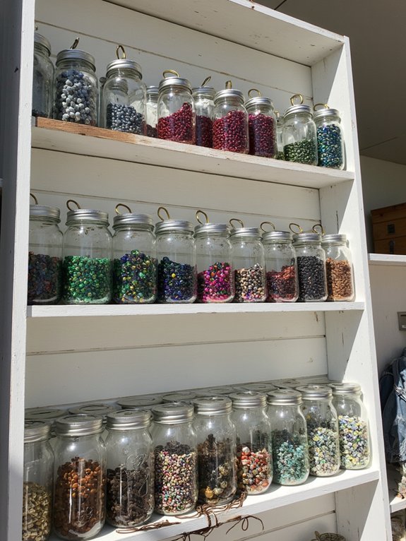 To maximize their effectiveness, organize beads by type, color, or size in labeled jars. Add silica gel packets to control humidity and display the jars where natural light can illuminate their contents. This creates both a functional storage system and an attractive display that enhances your crafting or workspace.