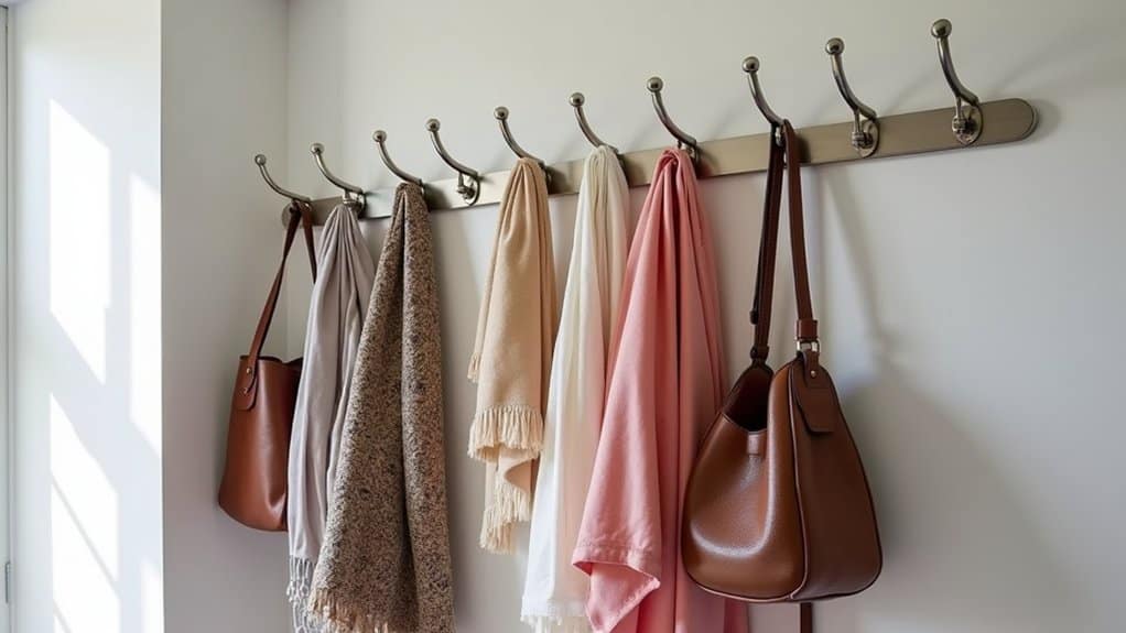 To organize with hanging hooks, group similar items together, such as keeping all belts on one set of hooks and scarves on another, for easy access. Confirm hooks are spaced evenly to avoid clutter and prevent items from overlapping or becoming tangled. Regularly declutter by removing items you no longer use to keep the space neat and functional.