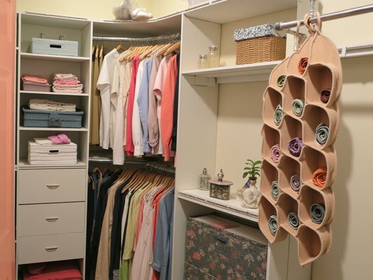 Beyond furniture solutions, closet doors offer valuable real estate for additional storage options. Installing door hangers and accessory racks instantly creates vertical storage without consuming precious closet space.