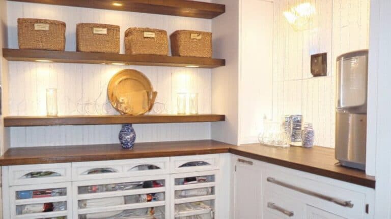 Label containers clearly to maintain organization long-term. Consider using coordinating storage containers to create a cohesive look while maximizing the functionality of each shelf level.