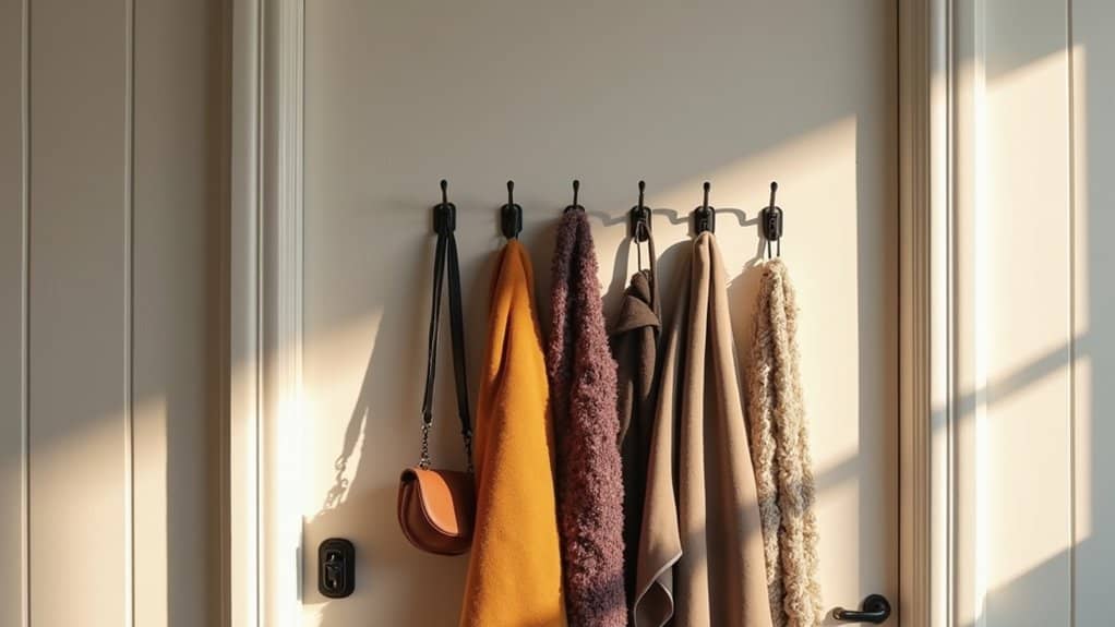 To install, clean the door surface thoroughly to guarantee the adhesive sticks properly, or use a drill for screw-in hooks if you prefer a more permanent solution. Test the hooks with lighter items first to confirm they are secure before hanging heavier belongings. This hack not only declutters your wardrobe shelves but also transforms unused door space into a functional storage area.