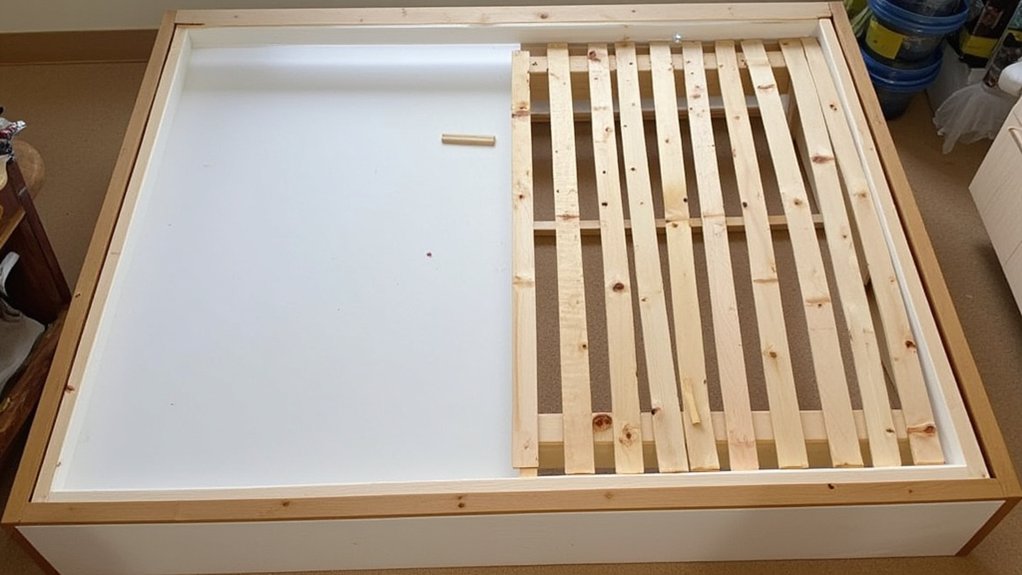 To properly install a bunkie board, you’ll need to follow specific measurements and safety guidelines that guarantee excellent support. “Most installation issues stem from incorrect sizing or placement,” notes Sarah Chen, furniture assembly specialist at BedFit Solutions.