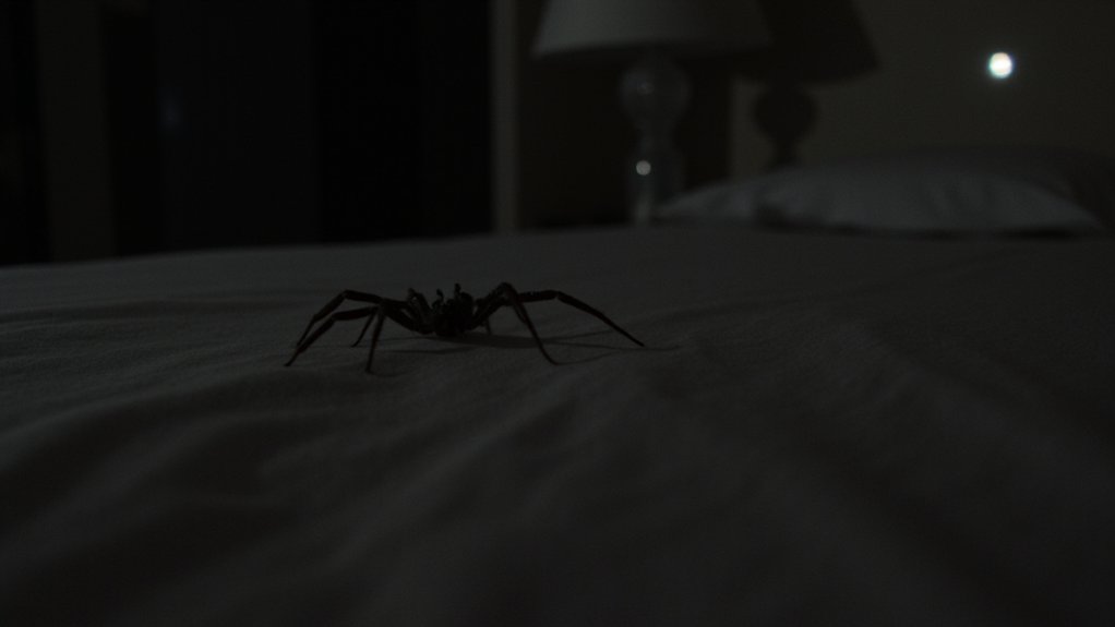 While these common bedroom spiders might seem threatening, understanding their nighttime behavior can help ease your concerns about potential bites. Most spider activity occurs during nighttime hours since they’re nocturnal predators, but they’re typically more interested in catching insects than bothering humans.