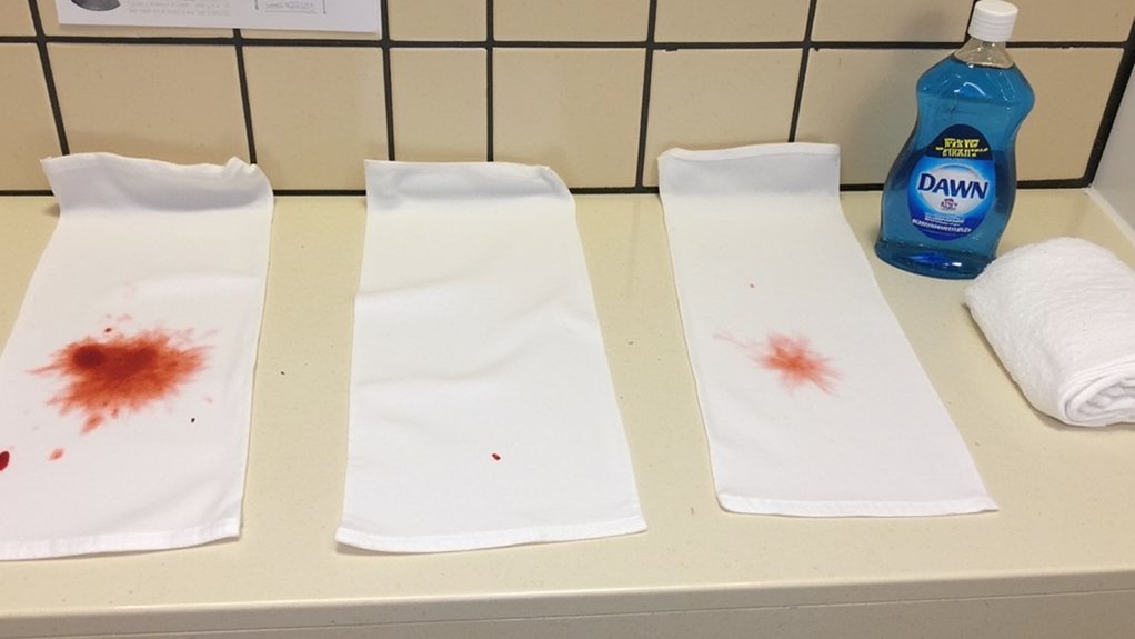 When you apply Dawn to a blood stain, its surfactants break down the proteins by surrounding the stain molecules. “The surfactants work by reducing surface tension between the blood and fabric,” explains textile scientist Dr. Sarah Chen. You’ll notice how Dawn’s molecules attach to both water and oil, creating a bridge that lifts the stain away from the fabric’s fibers.